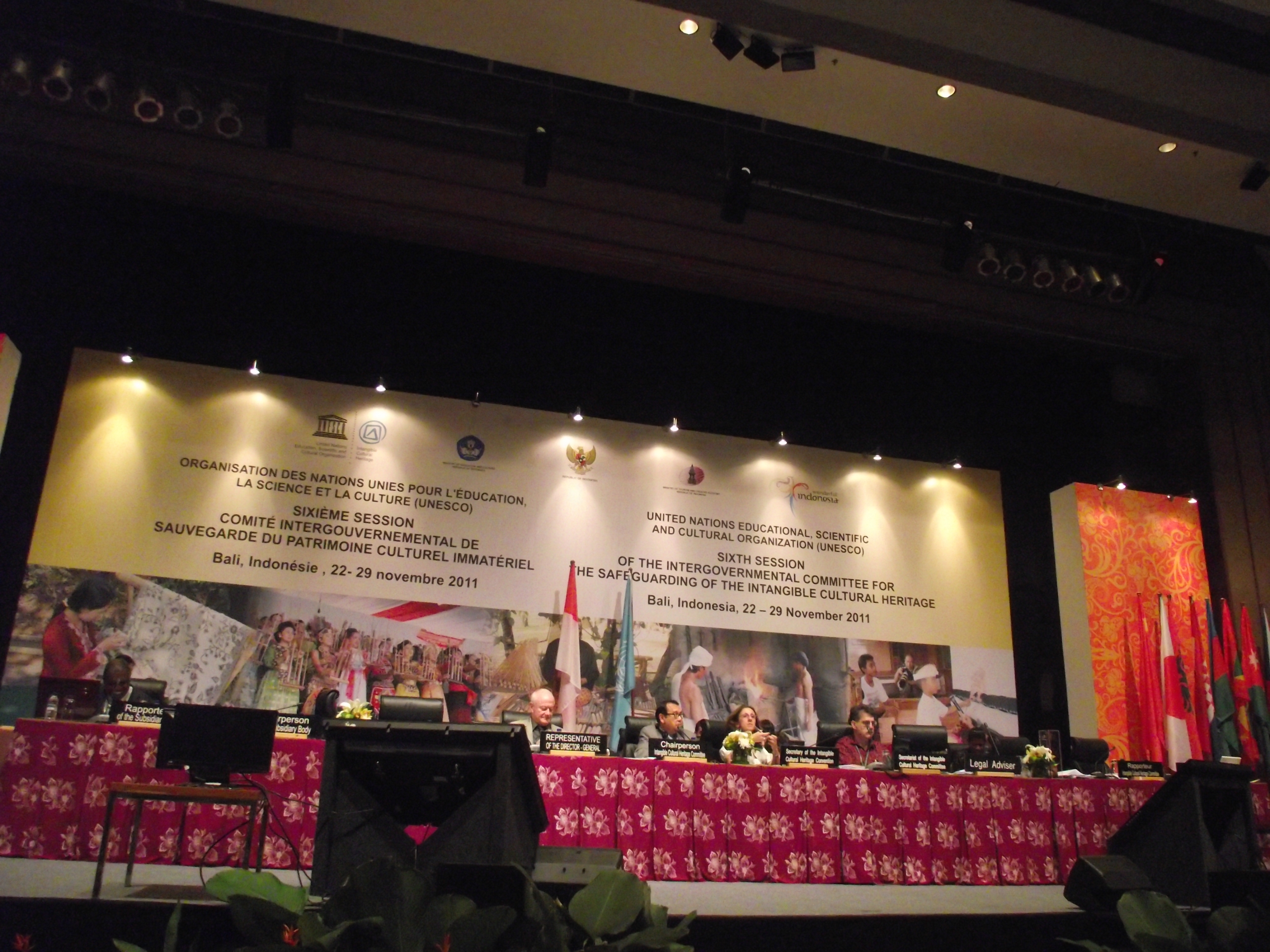 UNESCO Somut Olmayan Kültürel Miras 6. Hükümetlerarası Komite Toplantısı 22-29 Kasım 2011 tarihlerinde Endonezya-Bali’de gerçekleştirilmiştir. Toplantıya Genel Müdürlüğümüzü temsilen toplantı öncesi yayımlanan taslak program çerçevesinde 2011 yılı İnsanlığın Somut Olmayan Kültürel Mirası Temsili Listesi’nin görüşüleceği 26-28 Kasım 2011 tarihlerinde Kültür ve Turizm Uzmanı Ahu UÇAR SEVER katılım sağlamıştır.